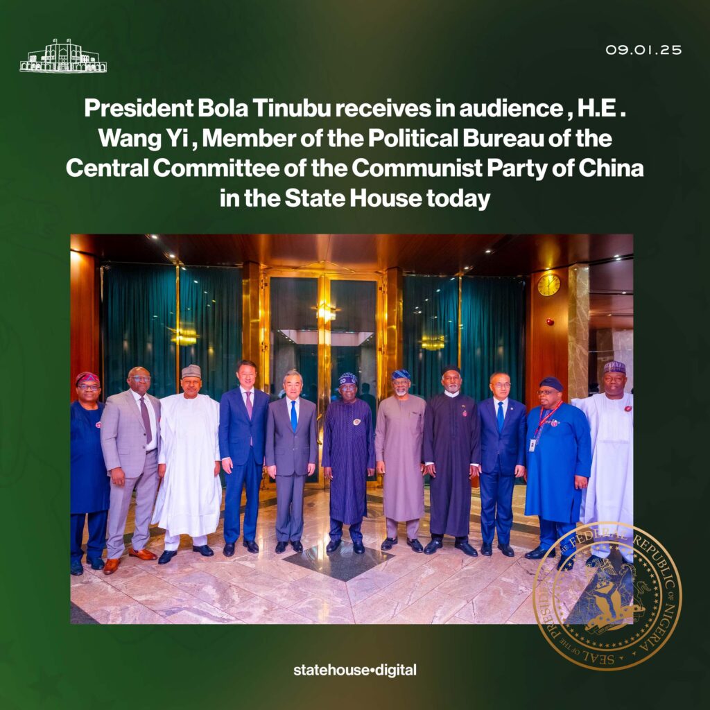 Nigeria has reaffirmed its commitment to agreements with China, strengthening bilateral ties between the two nations. This was stated as President Bola Ahmed Tinubu hosted the Chinese Minister of Foreign Affairs, Wang Yi in the State House, Abuja. President Tinubu, who was joined by Senior Government Officials including the Minister for Foreign Affairs Ambassador Yusuf Tuggar and the Director-General of the Nigeria-China Strategic Partnership, emphasized that the relationship between both countries was elevated to a comprehensive strategic partnership with the aim of building a high-level China-Nigeria community with a shared future and mutual prosperity. The Director-General of the Nigeria-China Strategic Partnership emphasized that “Nigeria’s partnership with China is a strategic one, aimed at driving economic growth and development. According to the Czar, one of Nigeria’s primary goals is to increase trade volume between Nigeria and China and address the trade imbalance. The Director-General pointed out that China has been a reliable partner and Nigeria looks forward to deepening cooperation in areas such as trade, investment, and infrastructure development.He added that under the partnership, China would transition from being a mere trade partner to a development partner in the industrialization of Nigeria. According to him, “It is worth noting that industrializing Nigeria means industrializing 25% of Africa. An economically sound and stable Nigeria signifies a prosperous continent of Africa.” Chinese Foreign Minister Wang Yi praised Nigeria’s role as a major African power with global influence and its contributions to the global South. “Nigeria is a major African country with global influence. It is an important member of the global South. As we work for Africa’s peace and development, Nigeria plays an irreplaceable and important role,” he noted. Wang emphasized China’s tradition of prioritizing Africa in its foreign policy, expressing hope that continued collaboration will bring tangible benefits to both nations. Wang further stated, “China has all along viewed and developed relations with Nigeria from a strategic height and a long-term perspective, hoping to further our solidarity and cooperation. We will continue to understand and support each other on issues concerning our respective core interests, and as we both pursue development and vitalisation, continue to pursue cooperation for mutual benefit.” The Chinese minister’s statements underscore the significance of the China-Nigeria partnership, which has been elevated to a comprehensive strategic partnership